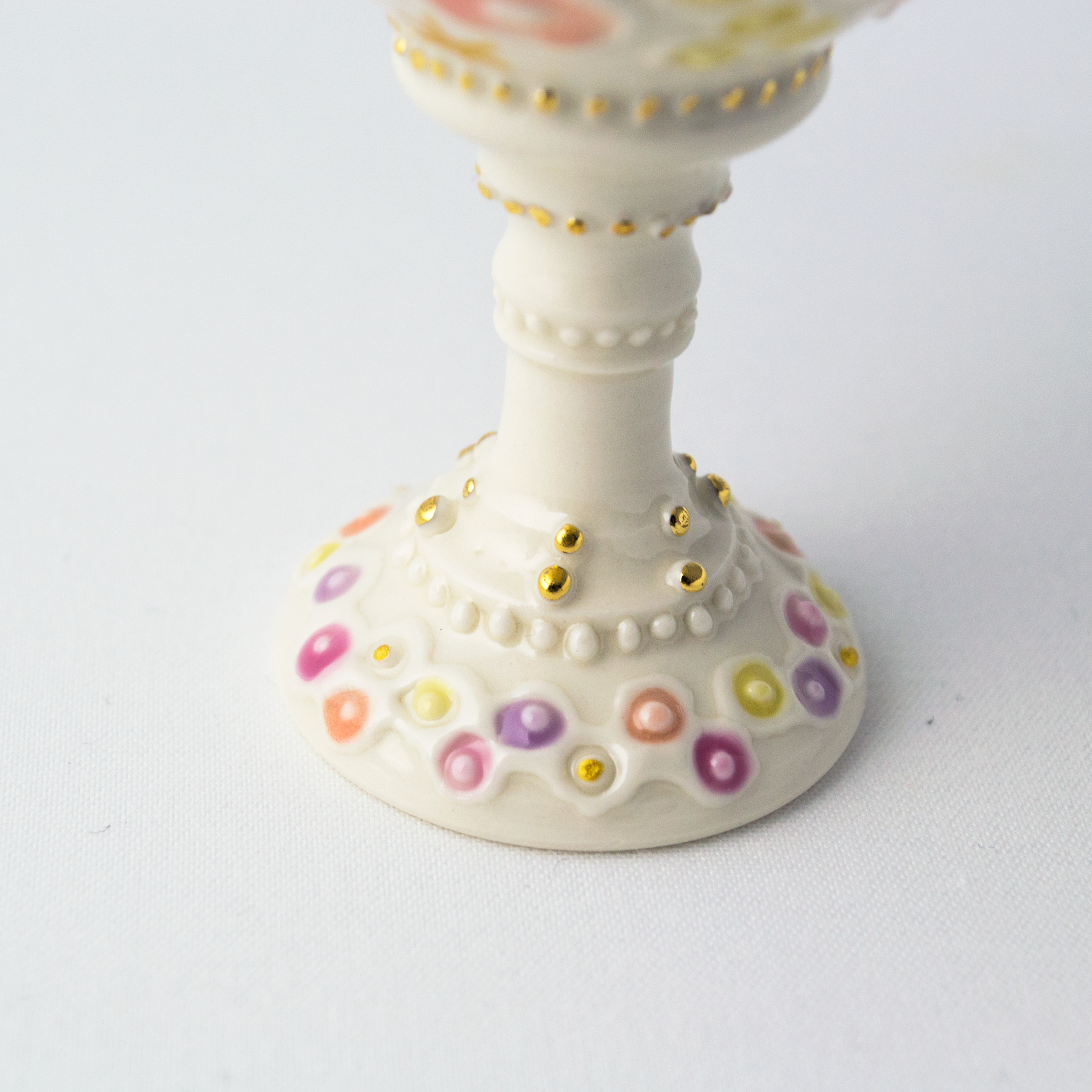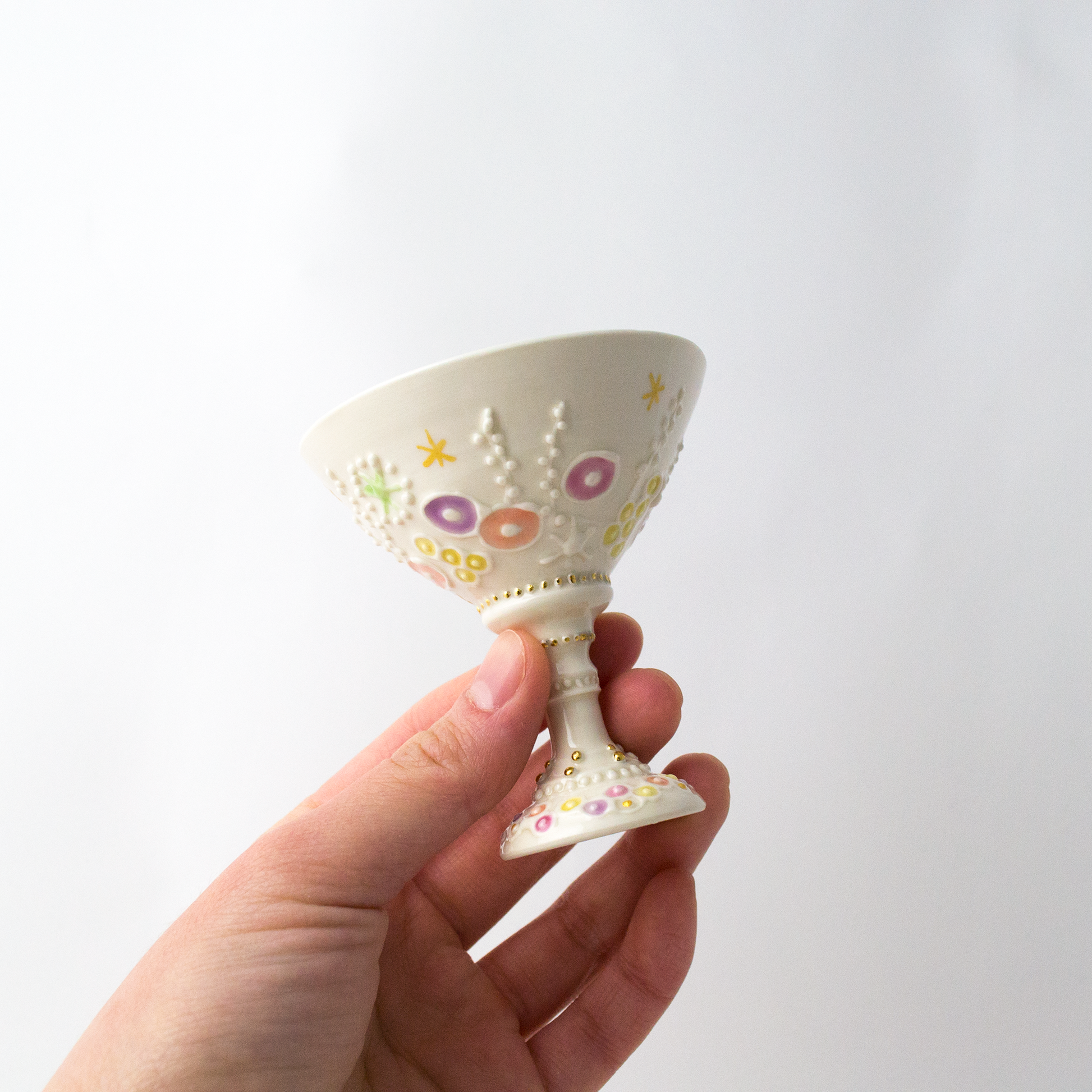 "Overglaze gold" is a technique of firing gold at high temperatures. Gold is a soft material. If you rub it on a hard object, it may peel off. Please handle it carefully.