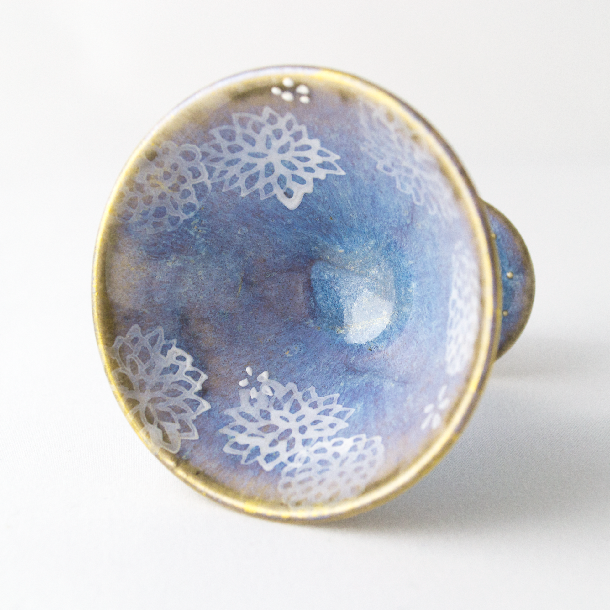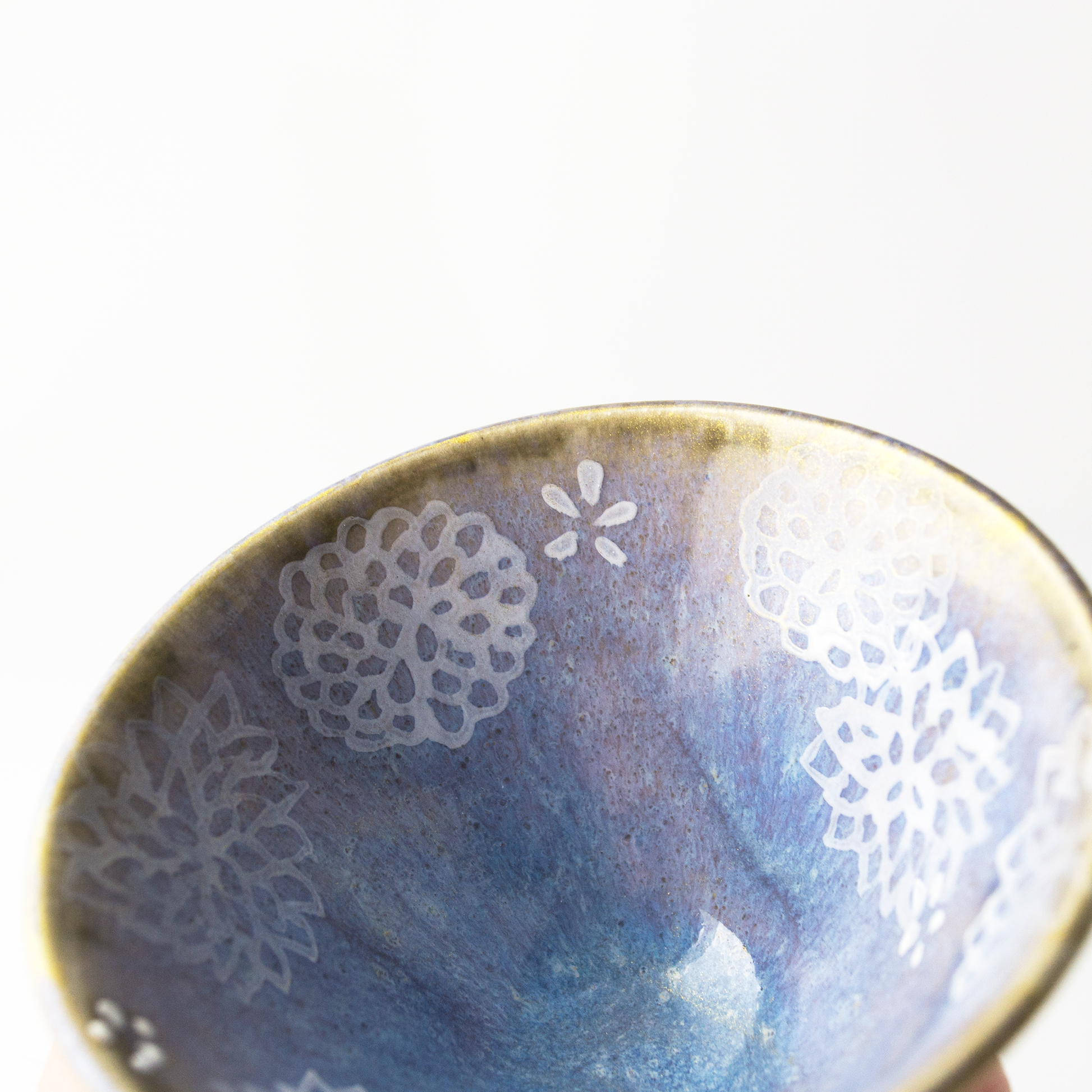 ■釉薬のムラ、貫入(表面のガラス質にできるヒビの表情)、鉄粉(鉄分が焼かれてできる黒点)、ピンホール(ちいさな穴)、金彩のにじみなどもあります。偶発的に生まれる表情は、やきものならではの味であり、その作品だけのもつ個性です。大量生産品とは異なりますので、予めご了承ください。